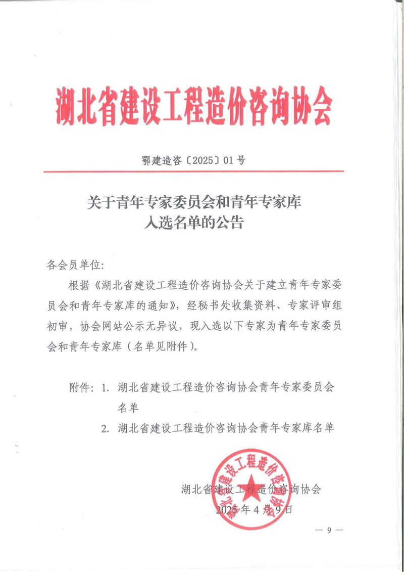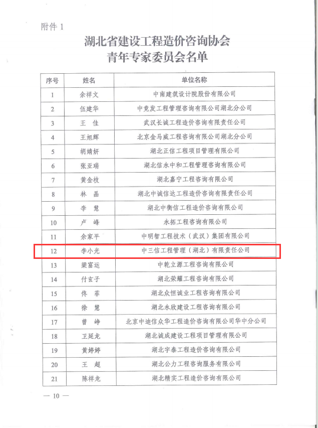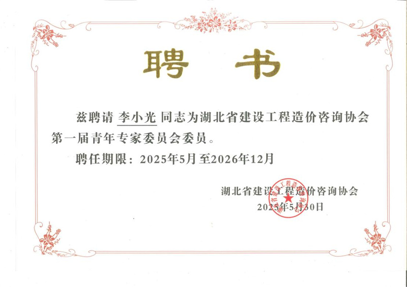 2025年5月30日,湖北省建設(shè)工程造價(jià)咨詢協(xié)會青年專家委員會成立大會暨第一次工作會議在武漢隆重召開。我司副總工程師、一級注冊造價(jià)師李小光受聘擔(dān)任協(xié)會第一屆青年專家委員會委員,這是協(xié)會對我司專業(yè)能力的認(rèn)可與肯定。